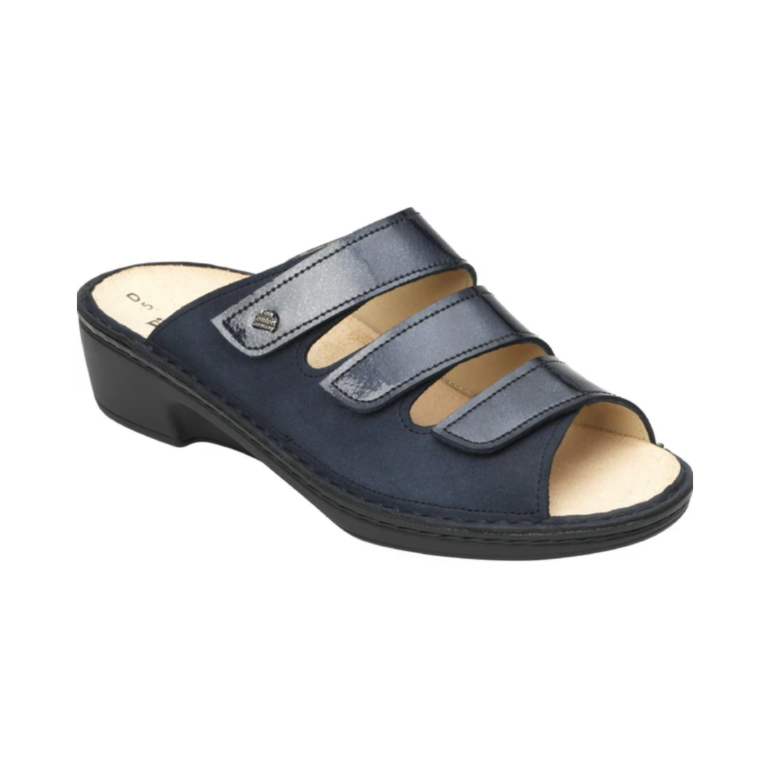 Ciabatta a tre fasce regolabili con velcro per garantire la massima adattabilità al piede. La calzatura è inoltre idonea per l’utilizzo di plantari su misura.