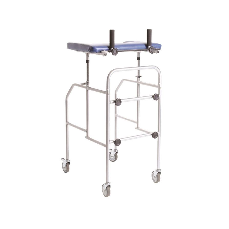 Deambulatore da interno che consente l’appoggio degli avambracci su tavolino imbottito per utilizzare il dispositivo e camminare. E’ regolabile in altezza ed ha 4 ruote piroettanti di cui 2 dotate di freno. Dispositivo particolarmente indicato nell’immediato post-operatorio o per chi ha gravi problemi deambulatori.