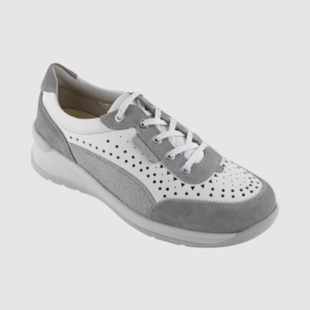 Calzatura estiva in pelle traforata per favorire la respirazione del piede. La scarpa è inoltre idonea per l’utilizzo di plantari su misura.