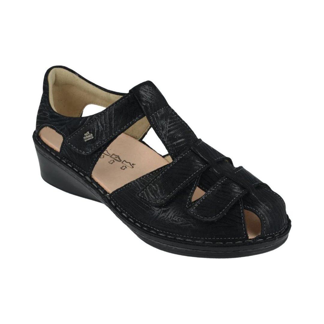 Sandalo con tallone chiuso e fasce regolabili per adattarlo al proprio piede facendolo sentire sicuro e stabile. La calzatura è inoltre idonea per l’utilizzo di plantari su misura.