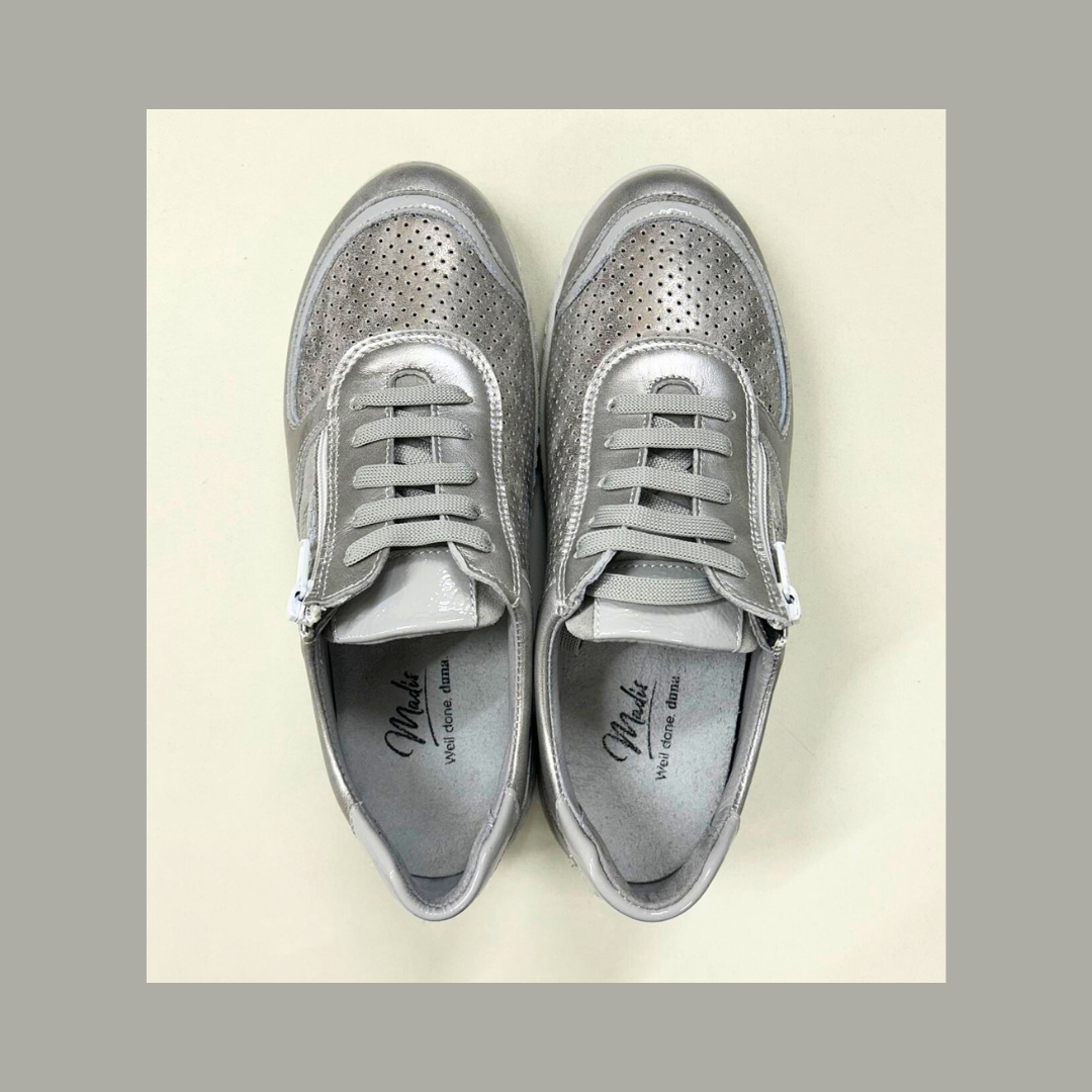 Sneakers coi lacci e con tomaia lucida. La calzatura è inoltre idonea per l’utilizzo di plantari su misura.